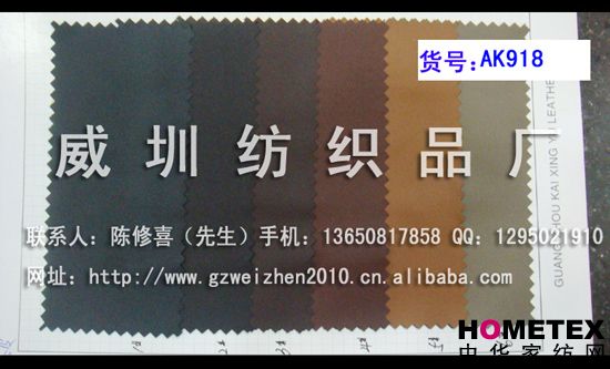 幅寬:140 別名:AK918 厚度:0.8 主要用途:鞋、箱包、服裝、手套 品種:PU革 貨號:AK918 品種:PU革 貨號:AK918 ============================================================= 以上產(chǎn)品全部現貨供應,可隨時(shí)提供樣布卡和現貨,隨時(shí)發(fā)貨。所有產(chǎn)品全部是廠(chǎng)家直銷(xiāo)價(jià),我們承諾:以超低利潤營(yíng)銷(xiāo),我們只求銷(xiāo)售量。為保證您的利益,我司建議您在采購前先確認我們的品質(zhì)樣與顏色樣后再拿大貨,期待與您的真誠合作。因產(chǎn)品種類(lèi)較多,具體參考未盡詳盡,如有需要,請您與我們聯(lián)系。 瑞豐紡織(中大旗艦店)坐落于國內最大的紡織面料產(chǎn)業(yè)中心—廣州中大,是一家專(zhuān)業(yè)銷(xiāo)售面料的廠(chǎng)家直銷(xiāo)商。主要經(jīng)營(yíng)產(chǎn)品有:全棉凈色、仿記憶絲面料、全棉(TC)色織等,面料品種花達上千余種,所有產(chǎn)品全部現貨經(jīng)營(yíng)。 我們面料的品質(zhì)來(lái)源于:1、采用國內外優(yōu)質(zhì)的原材料;2、使用精良的生產(chǎn)工藝和設備;3、完善的生產(chǎn)質(zhì)量管理體系。我們具有開(kāi)發(fā)和創(chuàng )新品種的強烈意識和優(yōu)越條件,并根據客戶(hù)需求與市場(chǎng)變化時(shí)時(shí)推出潮流面料。憑著(zhù)多年的專(zhuān)業(yè)行業(yè)經(jīng)驗,根據客戶(hù)需求,不論客戶(hù)在全國任何地方,只要提供小樣,就可在一兩天時(shí)間內輕松獲得所需面料的信息。 批發(fā)說(shuō)明供應商支持混批 。 ============================================================= 有意請加QQ:1295021910或電話(huà)聯(lián)系。 公司名稱(chēng):威圳紡織品廠(chǎng) 聯(lián)系人:陳修喜先生 手機:13650817858 網(wǎng)址:http://www.gzweizhen2010.cn.alibaba.com =============================================================