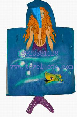 長(cháng)期供應 割絨純棉活性印花兒童披風(fēng)浴巾毛巾