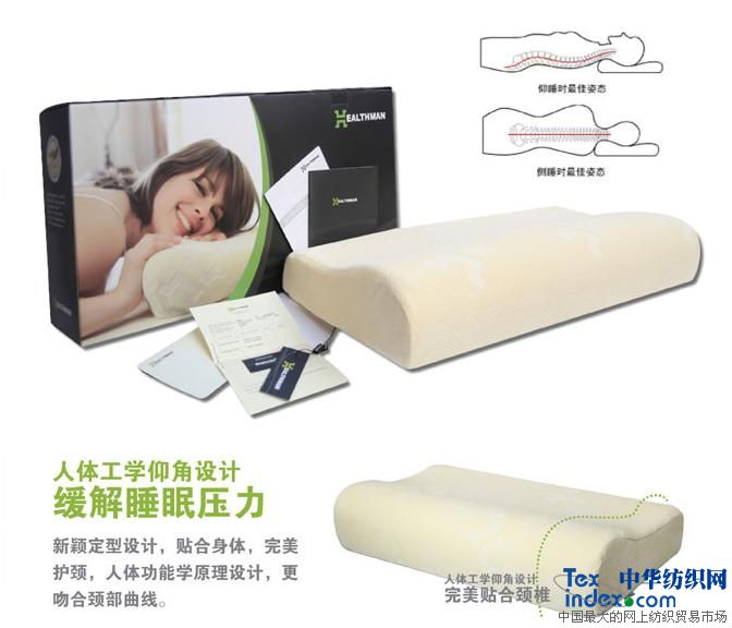 HEALTHMAN枕頭按照人體工學(xué)設計,完全貼合頭部、頸部及肩部曲線(xiàn),使頸椎保持自然彎曲狀態(tài),減少落枕可能并防治打鼾。同時(shí)配合HEALTHMAN材質(zhì)的溫感減壓性能,HEALTHMAN枕頭能夠有效吸收人體壓力,將頸部與枕頭之間的壓力化解為零,減少酸痛點(diǎn)的產(chǎn)生,促進(jìn)血液循環(huán),使大腦保持有氧狀態(tài),有助于緩解疼痛和提高睡眠質(zhì)量。另外,HEALTHMAN材質(zhì)的細胞結構是開(kāi)放式的,由于每個(gè)細胞單位間是相互連通的,它能夠讓空氣在整個(gè)枕頭間流通,因此透氣性能非常好,比起普通枕頭來(lái),它會(huì )讓您感到更加清爽舒適。而且這種材質(zhì)能抑制霉菌生長(cháng),驅除霉菌繁殖生長(cháng)產(chǎn)生的刺激氣味。