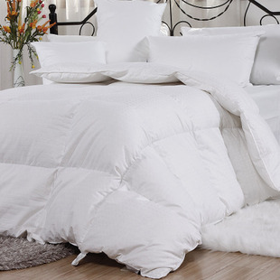 面料采用100%純棉高支高密府綢,手感柔軟,舒適。填充物為經(jīng)過(guò)高溫高壓殺菌處理的白鴨絨,含絨量為70%,充填量1500克白鴨絨,鴨絨被輕柔,透氣性好,保暖性佳,有一定的保健作用,是被子中的皇冠。