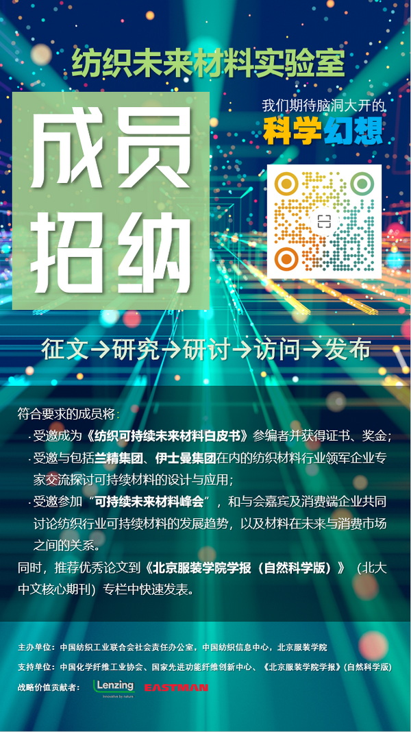 支持單位:中國化學(xué)纖維工業(yè)協(xié)會(huì )、國家先進(jìn)功能纖維創(chuàng )新中心、《北京服裝學(xué)院學(xué)報》(自然科學(xué)版)