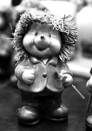 絨毛玩具類(lèi)型的老鼠挺多,比如米老鼠、卡通鼠等等。但是這個(gè)飾品的特點(diǎn)就在于能把陶藝和絨毛結合到一起,形象更加逼真和可愛(ài)。據店員介紹,原來(lái)是先用陶燒制成老鼠的模樣,然后粘上毛茸茸的鼠皮、眼睛、尾巴和胡子,最后呈現出一個(gè)異?蓯(ài)的老鼠飾品。在鼠年即將來(lái)臨的時(shí)候,擺在家里,讓人的心情也能隨著(zhù)可愛(ài)、俏皮的小老鼠的笑而舒暢起來(lái)。