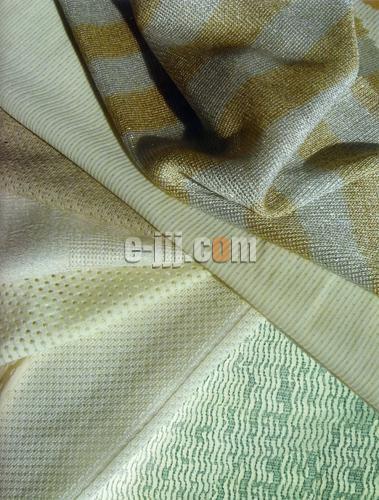 半透明膜紙、液態(tài)外觀(guān)的加工質(zhì)感體現出平紋、褶皺的肌理,棉和人造纖維混紡,平紋織物印花,色織、中薄型提花為其技術(shù)特征,光色主要為平淡、柔和。