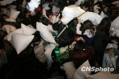 武漢舉行五百人枕頭大戰派對
