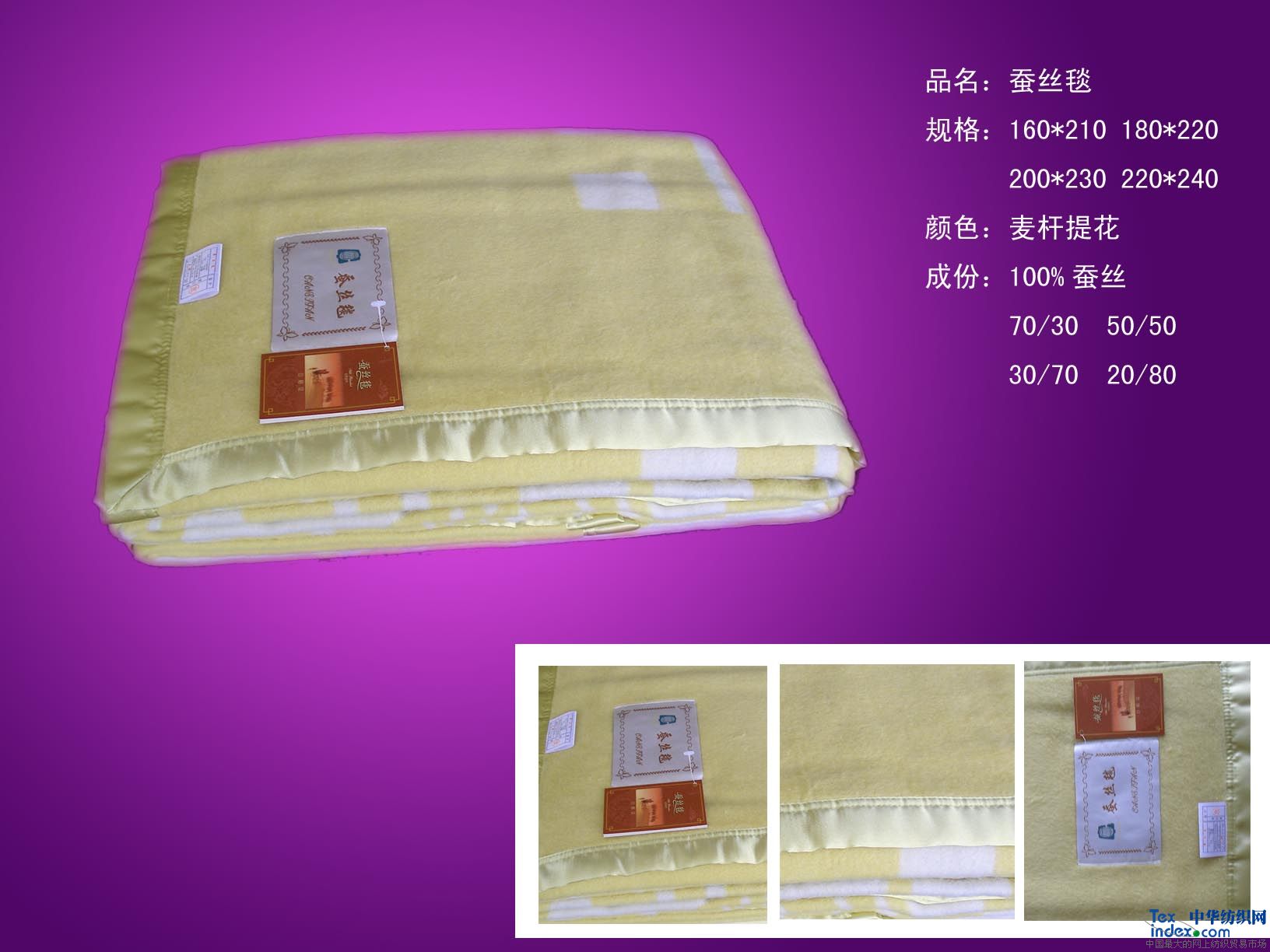 工藝類(lèi)型:素色,提花,方格 用途:毯子 成份:蠶絲 規格:180*220